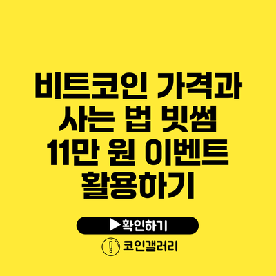 최근 빗썸에서는 비트코인을 11만 원에 구매할 수 있는 특별 이벤트를 진행하죠. 이 이벤트는 다음과 같은 방식으로 운영됩니다: