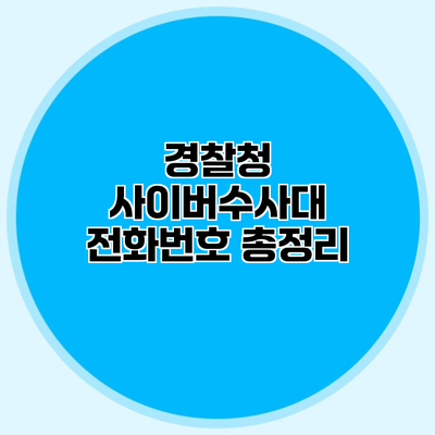 경찰청 사이버수사대에 연락해야 할 때, 직접 연결할 수 있는 전화번호는 매우 중요합니다. 다음 표를 통해 주요 전화번호를 확인해보세요.