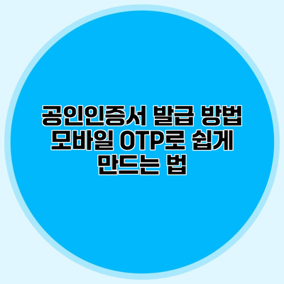 공인인증서는 온라인 거래에서 필수적인 요소로 자리 잡고 있죠. 하지만 복잡한 발급 과정 때문에 많은 사람들이 어려움을 느끼곤 해요. 특히 모바일 OTP를 이용하면 간편하고 안전하게 공인인증서를 발급받을 수 있어요!