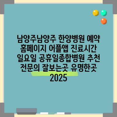 ✅ 2025년 남양주 한양병원 진료시간과 예약 방법을 확인해 보세요.