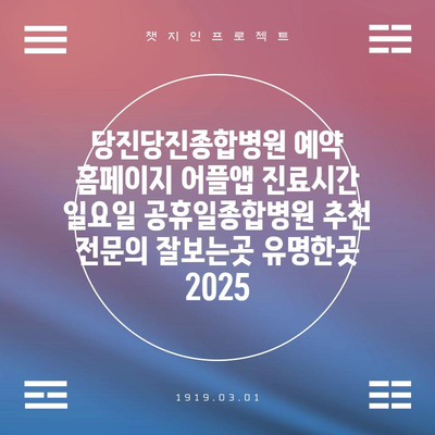 ✅ 당진당진종합병원의 진료시간과 예약 방법을 지금 바로 알아보세요.