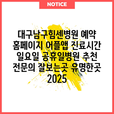 ✅ 대구남구힘센병원의 진료시간과 예약 방법을 자세히 알아보세요.