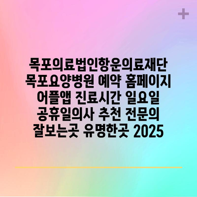 ✅ 목포요양병원의 진료시간 및 예약 방법을 지금 바로 알아보세요!