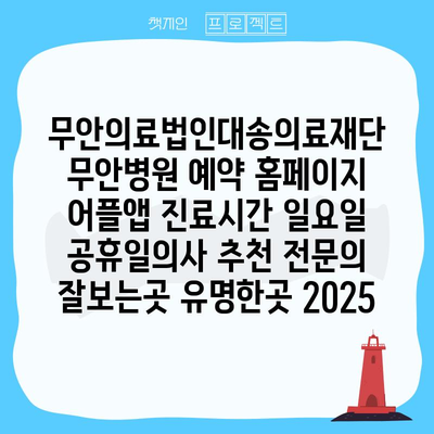 ✅ 무안병원에서 전문의 진료 예약하는 방법을 알아보세요.
