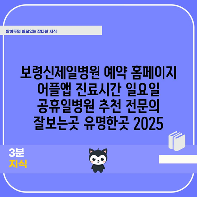 ✅ 보령신제일병원에서의 진료 예약과 전문의 상담 방법을 알아보세요.
