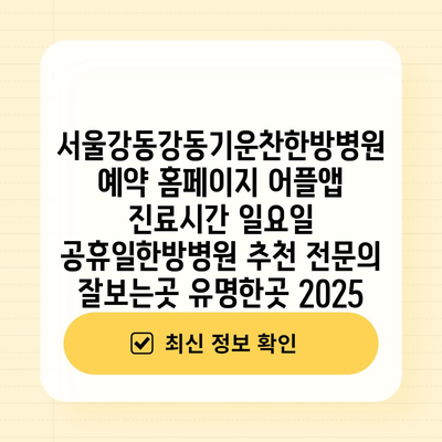 서울강동기운찬한방병원의 진료시간과 예약 방법을 알아보세요.