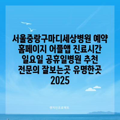 ✅ 서울 중랑구 마디세상병원의 예약 방법과 진료 시간을 확인해 보세요.