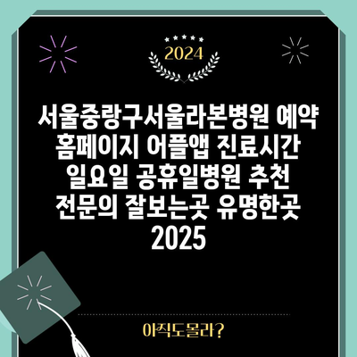 ✅ 서울 중랑구 서울라본병원의 진료시간 및 예약 방법을 알아보세요.