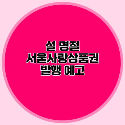 설 명절 서울사랑상품권 발행 예고와 활용 방안