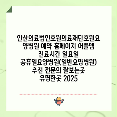 안산안산나래요양병원의 진료시간과 예약 방법을 지금 바로 알아보세요.