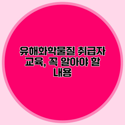 ✅ 유해화학물질 교육의 중요성을 지금 바로 알아보세요.