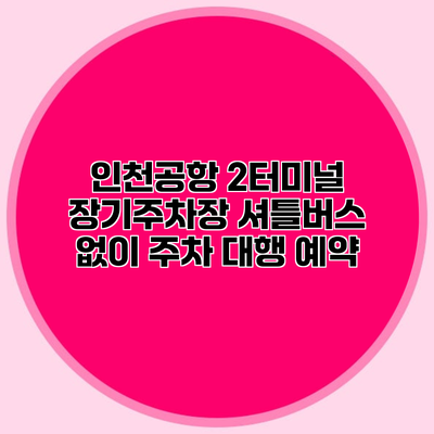 인천공항 2터미널 장기주차장과 주차 대행 서비스는 공항 이용 시 매우 편리한 옵션입니다. 장기 여행을 계획하고 있다면 셔틀버스 없이 차량 주차 대행 예약을 통해 시간을 아끼고, 스트레스를 줄여보세요. 신뢰할 수 있는 업체를 선정하는 것이 중요하며, 미리 예약하여 안전하고 편안한 여행을 즐기세요!