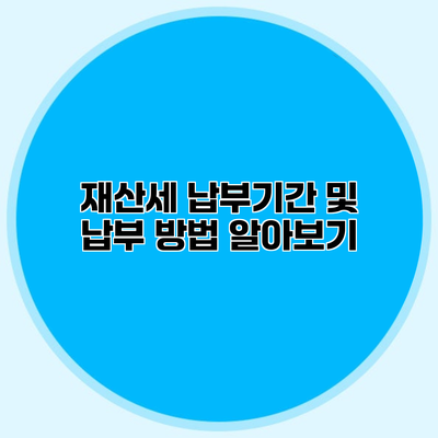 재산세는 모든 부동산 소유자가 반드시 납부해야 하는 필수 세금이에요. 재산세에 대한 이해가 부족하다면, 납부 시기에 벌금을 피하거나 세금을 동원하는 데 어려움이 생길 수 있어요. 이번 포스트에서는 재산세의 납부기간과 방법에 대해 자세히 알아보도록 할게요.