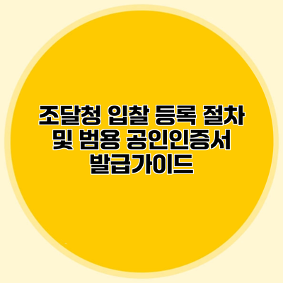 조달청에 입찰 등록하는 과정은 복잡하게 느껴질 수 있지만, 충분히 이해하고 차근차근 진행하면 어려운 점 없이 가능한 일입니다. 이 과정을 정확히 이해하면 쉽게 경쟁력을 갖출 수 있는 기회를 얻게 됩니다. 이 블로그 포스트에서는 조달청 입찰 등록 절차와 범용 공인인증서 발급 가이드에 대해 상세히 설명하겠습니다.