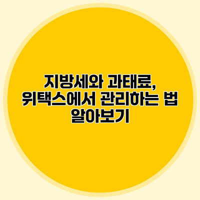 지방세와 과태료는 우리 생활과 직결된 중요한 요소로서, 이를 효과적으로 관리하는 것이 필수적이에요. 위택스를 통해 지방세를 조회하고 간편하게 납부하여 불필요한 비용을 방지할 수 있어요. 지금 당장 위택스에 가입하여 세금 관리를 시작해보세요! [이 사이트를 통해 지방세를 더 효과적으로 관리해보세요!]
