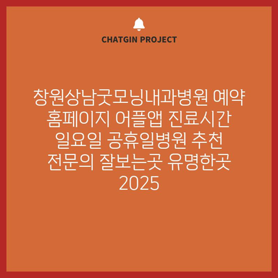 ✅ 창원상남굿모닝내과병원의 진료시간과 예약 방법을 자세히 알아보세요.