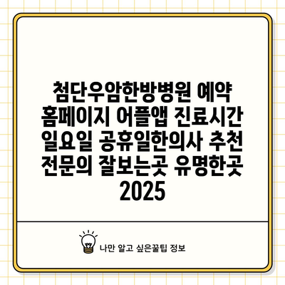 ✅ 첨단우암한방병원의 예약 방법과 진료시간을 지금 바로 알아보세요.