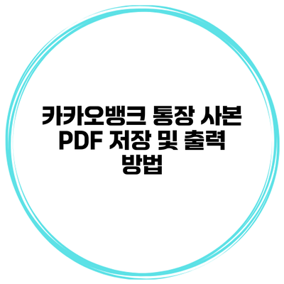 카카오뱅크 통장 사본을 PDF로 저장하고 출력하는 방법은 매우 간단합니다. 위의 과정을 따라 하시면 쉽고 빠르게 통장 사본을 준비할 수 있어요. 특히, 문서 제출이나 금융 거래 시 필수적으로 필요하니, 적절히 활용해 보세요.