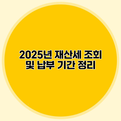 2025년 재산세 조회 및 납부 기간에 대한 이해는 매우 중요합니다. 주어진 납부 기간 안에 정확히 납부하고, 조회를 통해 필요한 정보를 미리 준비하는 것이 필요해요.