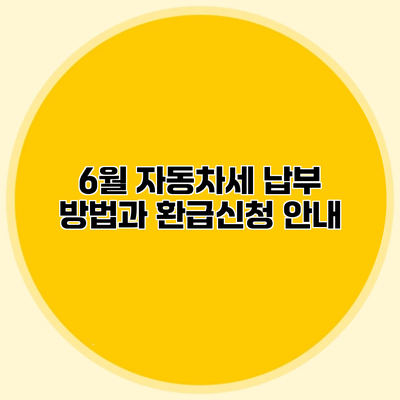 자동차를 소유하고 계신 분들에게 6월은 특별한 의미가 있습니다. 바로 자동차세를 납부해야 하는 시기이기 때문이죠. 이 기회를 놓치지 않도록 준비해야 합니다. 그렇다면, 자동차세를 어떻게 납부하고, 만약 필요한 경우 환급신청은 어떻게 해야 할까요? 이 글에서는 자동차세 납부 방법과 환급신청에 대한 자세한 정보를 제공하겠습니다.