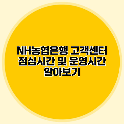 NH농협은행 고객센터의 운영시간을 자세히 알아보세요.