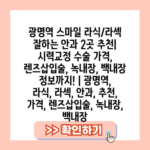 광명역 스마일 라식/라섹 잘하는 안과 2곳 추천 | 시력교정 수술 가격, 렌즈삽입술, 녹내장, 백내장 정보까지! | 광명역, 라식, 라섹, 안과, 추천, 가격, 렌즈삽입술, 녹내장, 백내장 광명역 주변에서 스마일 라식 또는 라섹 수술을 고려하고 계신가요? 혹시 렌즈삽입술, 녹내장, 백내장 등 다른…