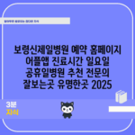 보령신제일병원 예약 홈페이지 어플앱 진료시간 일요일 공휴일병원 추천 전문의 잘보는곳 유명한곳 2025