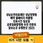 성남순천의료재단 성남정병원 예약 홈페이지 어플앱 진료시간 일요일 공휴일종합병원 추천 전문의 잘보는곳 유명한곳 2025