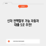 신차 전액 할부 가능한 곳 best5 자동차 대출 받기 신차를 구입할 때 전액 할부가 가능하다는 사실은 많은 소비자들에게 매력적인 옵션입니다. 특히 신차 구매 시 일반적으로 30~50%의 선수금을 지불하는 경우가 많지만, 다양한 사정으로 인해 전체 금액을 할부로 구매해야 하는 상황도 생깁니다….