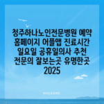 청주하나노인전문병원 예약 홈페이지 어플앱 진료시간 일요일 공휴일의사 추천 전문의 잘보는곳 유명한곳 2025