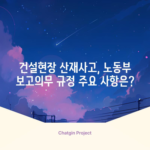 건설현장 산재사고 노동부 보고의무 규정 Meta Description: 건설현장 산재사고 발생시 노동부 보고의무 규정에 대해 알아보세요. 산재사고의 종류와 보고 방법, 위반시 처벌 내용을 포함합니다. 1. 건설현장에서의 산재사고 발생 현황 건설현장 산재사고는 산업 재해 발생 빈도가 가장 높은 업종 중 하나입니다. 이는…