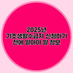 2025년 기초생활수급자 조건과 생계급여 신청 방법 알아보기 2025년이 다가오면서, 많은 분들이 기초생활수급자 지원에 대해 관심을 갖고 계실 거예요. 기초생활수급자 제도는 저소득층 가구의 생계 안정을 위한 매우 중요한 정책이죠. 오늘은 기초생활수급자로 신청하기 위한 조건과 생계급여 신청 방법에 대해 자세히 알아볼게요. ✅…