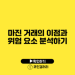 마진 거래의 장점과 위험 요소 분석하기 마진 거래는 투자자에게 큰 기회를 제공하지만, 동시에 상당한 위험을 내포하고 있는 분야입니다. 여러 금융 제품 및 자산 거래에서 마진을 활용하는 것은 그 자체로 깊은 통찰력을 요구합니다. 이 글에서는 마진 거래의 장점과 그에 따르는 위험…