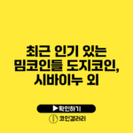 최근 들어 암호화폐 투자에 있어 밈코인이 큰 인기를 끌고 있어요. 특히 도지코인과 시바이누는 많은 사람들에게 주목받고 있는데요, 이러한 밈코인의 인기는 단순한 경제적 가치 이상의 것들을 내포하고 있습니다. 이에 대해 자세히 알아보도록 할게요. ✅ 도지코인과 시바이누의 비밀을 지금 바로 알아보세요! 👉…