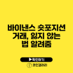 바이낸스 숏포지션 거래에서 잃지 않는 법: 성공적인 전략과 팁 비트코인과 이더리움과 같은 암호화폐 시장은 오늘날 많은 투자자들에게 기회를 제공하고 있어요. 하지만 이러한 기회와 함께 저간들도 많죠. 그렇다면 바이낸스에서 숏포지션 거래를 하면서 잃지 않는 비법은 무엇일까요? 이번 포스팅에서는 숏포지션 거래의 기본…