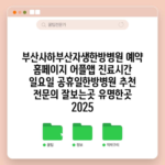 부산사하부산자생한방병원 예약 홈페이지 어플앱 진료시간 일요일 공휴일한방병원 추천 전문의 잘보는곳 유명한곳 2025