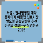 서울노원새힘병원 예약 홈페이지 어플앱 진료시간 일요일 공휴일병원 추천 전문의 잘보는곳 유명한곳 2025