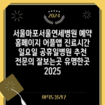 서울마포서울연세병원 예약 홈페이지 어플앱 진료시간 일요일 공휴일병원 추천 전문의 잘보는곳 유명한곳 2025