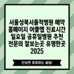 서울성북서울척병원 예약 홈페이지 어플앱 진료시간 일요일 공휴일병원 추천 전문의 잘보는곳 유명한곳 2025