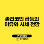 솔라코인은 최근 몇 주간 빠른 속도로 급등세를 보이며 많은 투자자들의 이목을 집중시켰습니다. 그 이유는 무엇일까요? 이 포스트에서는 솔라코인의 급등 이유와 향후 시세 전망을 깊이 있게 비교해 보겠습니다. ✅ 솔라코인의 급등 원인과 함께 미래 전망을 알아보세요. 👉 솔라코인 시세 전망 확인하기…