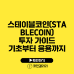 스테이블코인 투자 설명서: 기초부터 활용까지 알아보자 스테이블코인은 암호화폐 시장에서 가장 중요하고 독특한 자산 중 하나로, 많은 투자자들에게 안정성과 신뢰성을 알려알려드리겠습니다. 특히 변동성이 큰 암호화폐 시장에서 스테이블코인은 안정적인 투자 수단으로 인식되고 있는데요, 이제 스테이블코인의 기초부터 다양한 활용 방법까지 알아보도록 하겠습니다. ✅…