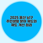 2025 울산 남구 주민생활 분야의 제도 및 그 개선 방안 점검 2025년이 다가오면서 울산 남구는 주민생활과 관련된 다양한 제도에 대한 점검이 더욱 중요해지고 있어요. 특히, 주민의 삶의 질 향상과 복지 증진을 위한 제도 개선은 반드시 이루어져야 합니다. 따라서 이번 블로그…
