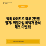 틱톡 라이트로 하루 2만원 버는 법 신규 회원가입 혜택과 출석 체크 이벤트 틱톡 라이트로 하루 2만원 버는 법 신규 회원가입 혜택과 출석 체크 이벤트에 대해 알아보겠습니다. 최근 틱톡 라이트에서는 신규 회원을 위한 다양한 혜택과 이벤트가 진행되고 있습니다. 특히, 친구 초대…